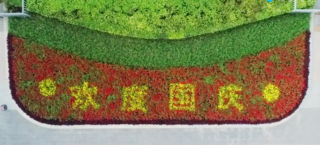 五星紅旗迎風(fēng)飄揚(yáng),萬盆花卉齊展生機(jī),營(yíng)造出濃濃節(jié)日氛圍。